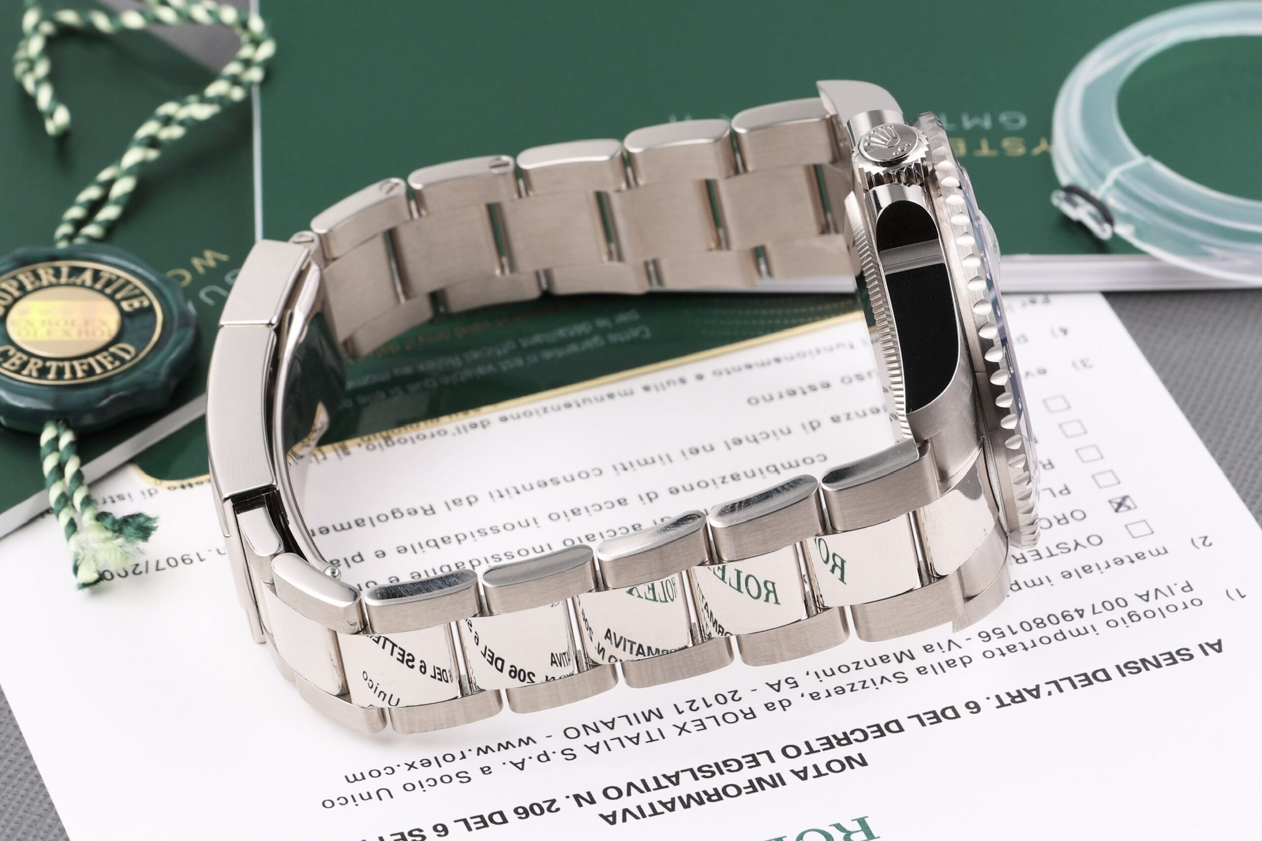 Full Set: scatola, garanzia Rolex, libretti, portagaranzia, coprighiera, bollino di ceralacca