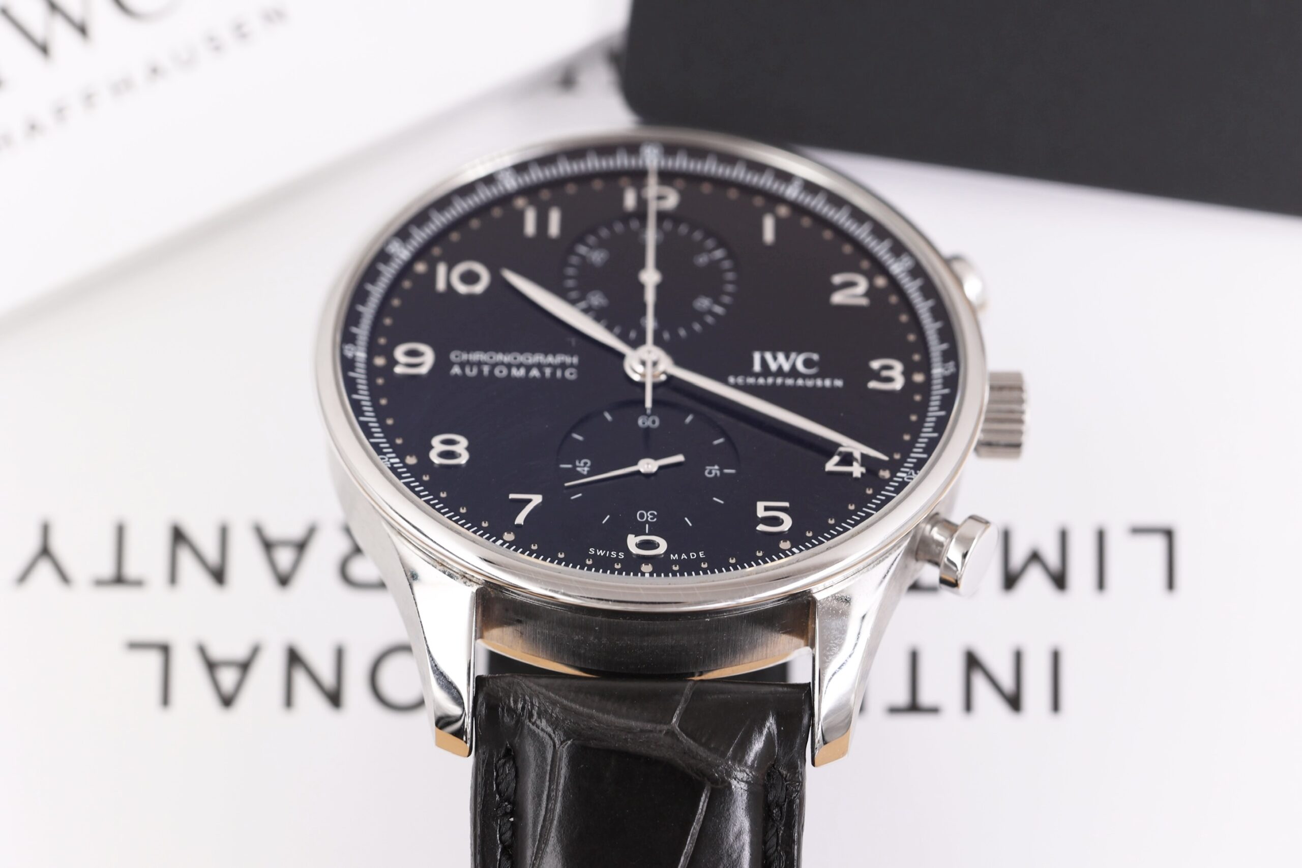 IWC Portoghese Chrono Ref. IW371609 Full Set: scatola, garanzia IWC, libretti, doppio cinturino originale IWC (pelle + gomma) Condizioni eccellenti Anno 2023