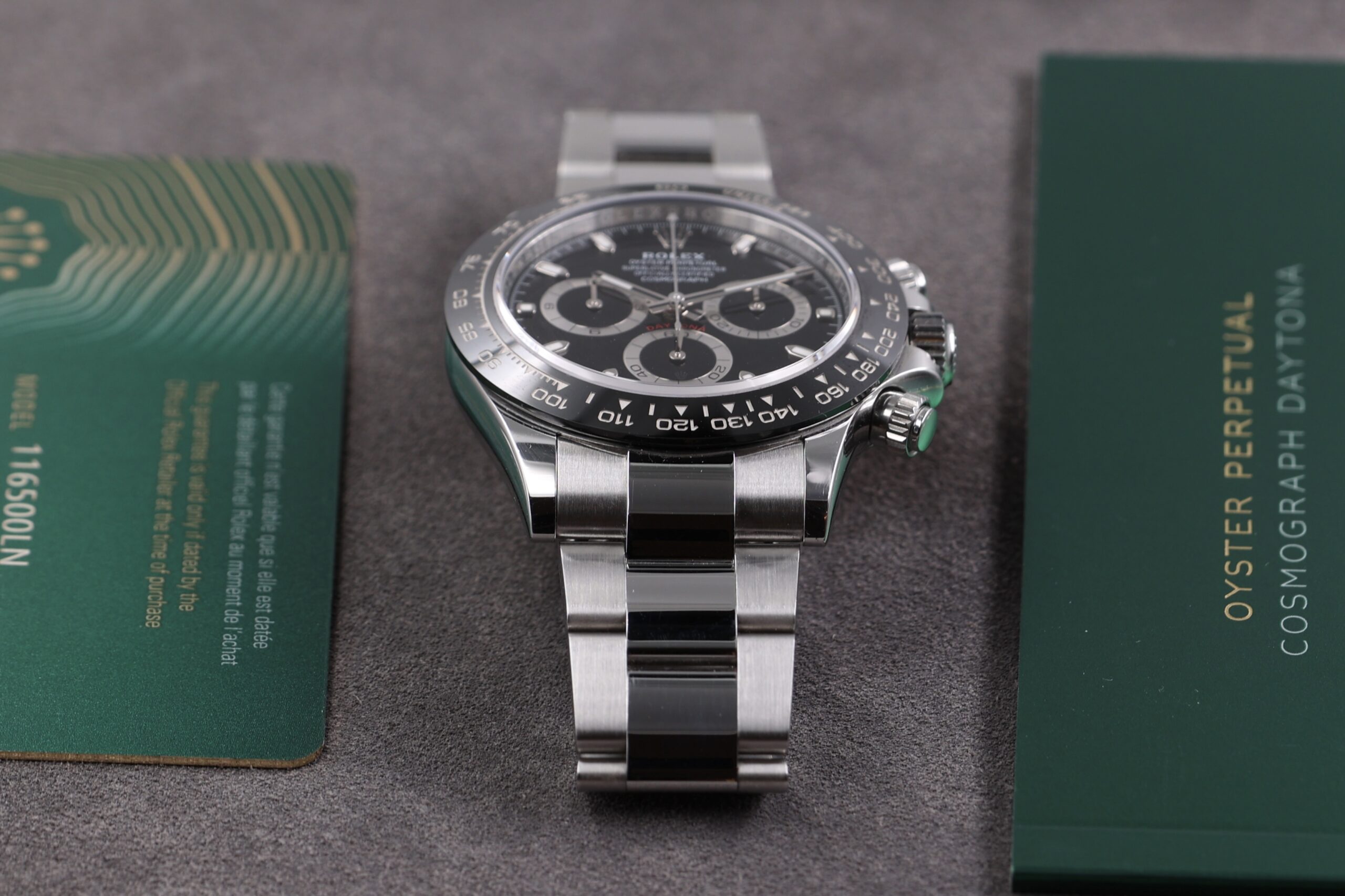 Rolex Daytona ref. 116500LN Quadrante nero Full Set: scatola, garanzia Rolex, libretti, portagaranzia Condizioni eccellenti Anno 2022