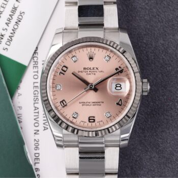 Rolex Oyster Perpetual Date 115234 – Rose Diamond Dial – Full Set – Excellent Condition – 2014
